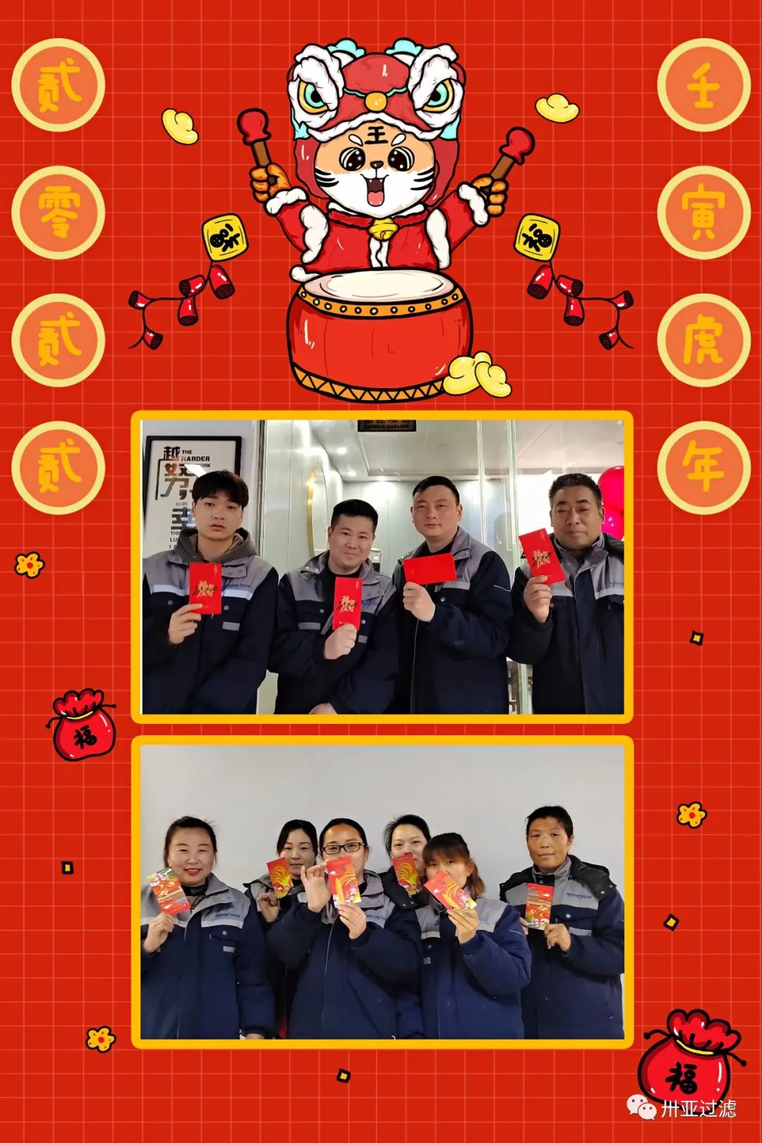 告別了新年的假期,又回到熟悉的工作崗位上,卅亞過濾開工首日,公司王總送出紅包與祝福,感謝大家在過去一年中的努力,也希望大家面對新一年的機遇和挑戰,滿懷信心,同心齊力,開啟虎年奮進新征程。 站在2022充滿希望與力量的開端,卅亞過濾將繼續堅守對客戶的承諾,做好產品與服務,做精管理,堅信唯有奮斗才能創造佳績。 一年之計在于春,春天孕育著希望,承載著夢想,開局就是奔跑,起步就是沖刺,2022年卅亞過濾要以虎虎生威的雄風,生龍活虎的干勁,氣吞萬里如虎的精神為美好的工作和生活并肩前行。