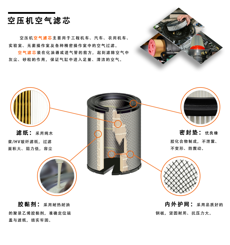 發動機在工作過程中要吸進大量的空氣,如果空氣不經過濾清,空氣中懸浮的塵埃被吸入氣缸中,就會使活塞組及氣缸的磨損。較大的顆粒進入活塞與氣缸之間,會造成嚴重的"拉缸"現象,這在干燥多沙的工作環境中尤為嚴重。569003801P PU端蓋空壓機空氣過濾器濾芯裝在化油器或進氣管的前方,起到濾除空氣中灰塵、砂粒的作用,保證氣缸中進入足量、清潔的空氣。
