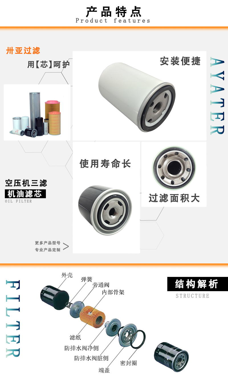 因?yàn)閾碛性谝簤盒袠I(yè)過濾件的經(jīng)驗(yàn),卅亞開發(fā)了一系列特別適合于螺桿式和葉片式壓縮機(jī)的油過濾器。要注意的是,卅亞生產(chǎn)的這類油過濾器能夠承受一定的壓力和溫度劇烈變化,并有能承受的壓力和溫度極值。