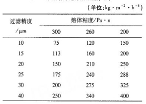 卅亞熔體濾芯使用壽命預測:濾芯使用壽命,即濾芯上機工作天數(shù),也是一個重要的指標。如果熔體過濾器切換頻繁,上機工作天數(shù)小于 30 d,將直接影響生產(chǎn)的連續(xù)性和經(jīng)濟性。推薦的聚酯熔體過濾器流量見表。