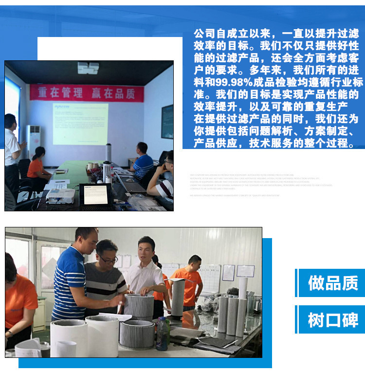 新鄉(xiāng)市卅亞過濾有限公司自成立以來、一直從事過濾產(chǎn)品的研究、設(shè)計和制造,公司匯集了一大批***技術(shù)人才,***從事過濾凈化的研究和應(yīng)用,為產(chǎn)品的設(shè)計制造提供技術(shù)支持。經(jīng)過多年的發(fā)展,逐步轉(zhuǎn)變?yōu)楣I(yè)過濾器制造行業(yè)的一個重要品牌,在國內(nèi)及國外擁有者廣闊的市場,自成立伊始,卅亞過濾不斷融合國內(nèi)外的技術(shù),引進(jìn)***的生產(chǎn)設(shè)備,配套***的質(zhì)檢設(shè)備,傾心為客戶提供技術(shù)服務(wù)、并提供油和空氣的過濾解決方案。我們提供的不僅僅是過濾產(chǎn)品,而且包括問題解析,方案制定,產(chǎn)品供應(yīng),技術(shù)服務(wù)的整個過程。