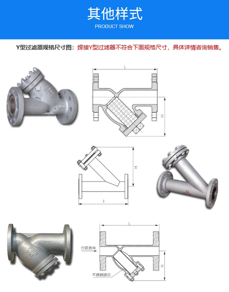 Y型過(guò)濾器法蘭球墨鑄鐵304不銹鋼
